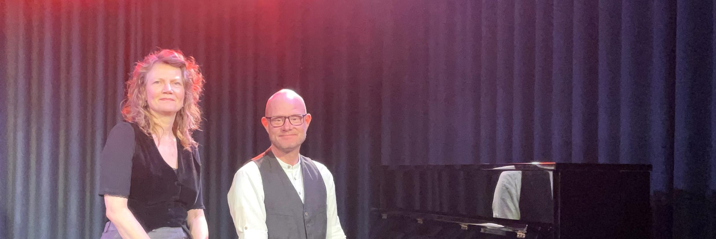 Den lokale Brønshøj-sanger og sangskriver Jo Dietrich introducerer aftenens sange.