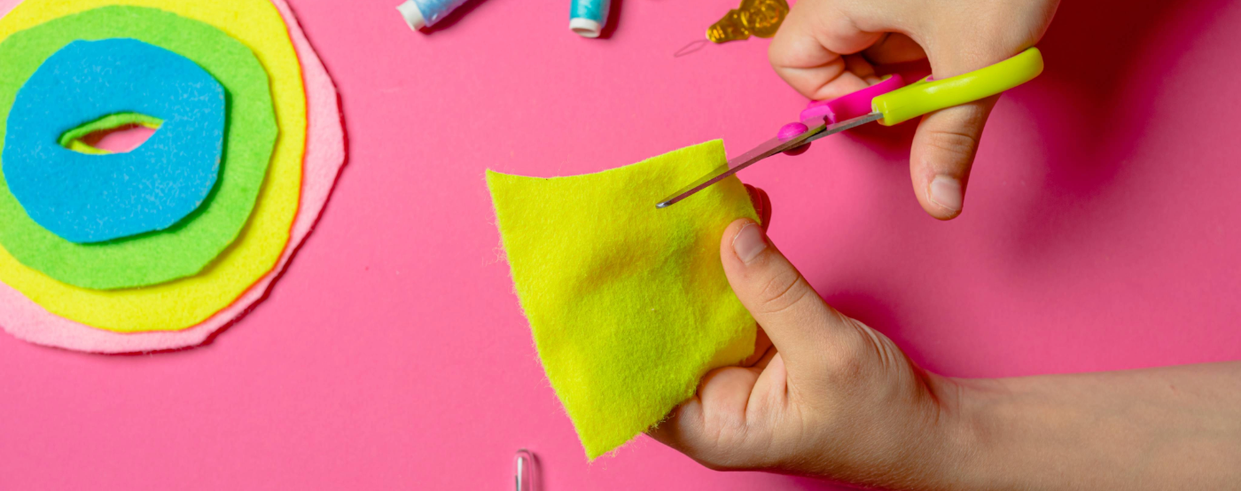 Sammen med tekstilformidler Henriette Winther laver vi flotte masker i filt, som dekoreres med farver, glimmer og pailletter.
