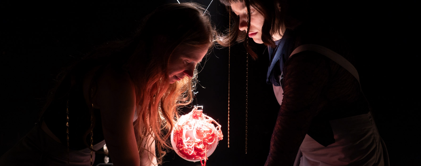 Vi møder dem i The Crying Room – en installation, hvor væsker glitrer, drypper, smelter og flyder som i et videnskabeligt laboratorium. Et destilleri, der spejler vores tårekanaler, og hvor lydlandskabet bevæger sig mellem det rungende og det helt nære, hviskende. Det er det indre liv, der flyder over.